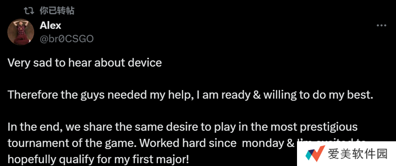 br0在社交平台上分享了自己替补device参加欧洲RMR的感受。
