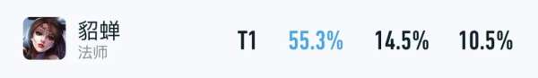 以上则是貂蝉目前的巅峰赛数据,在25%BP率的前提下,胜率高达55.3%,位居全英雄榜首。