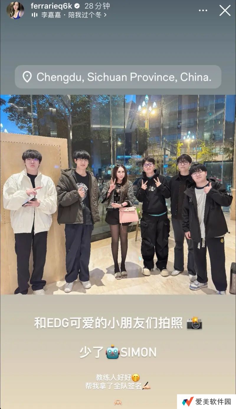 和EDG可爱的小朋友们拍照,少了S1Mon,教练人好好,帮我拿了全队签名!