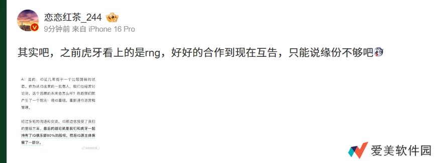 对于专访的内容,恋恋红茶感慨到,此前虎牙在投资iG之前是投资RNG,两个战队从好好合作到现在对簿公堂,只能说缘份不够吧!