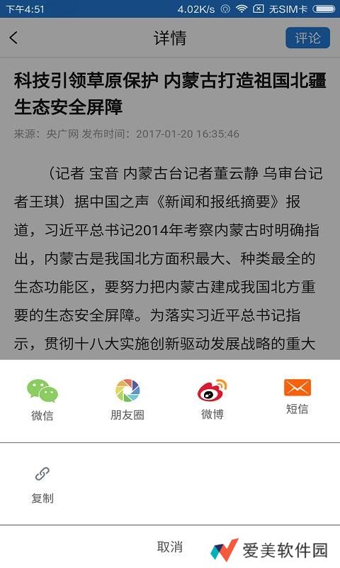 多个分享渠道,当分享新闻的时候可以分享到微信、朋友圈和微博以及短信;