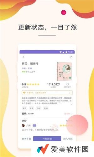 为用户带来实时的小说更新服务,同步推荐功能服务,让用户想追的书的新消息都能第一时间知道。
