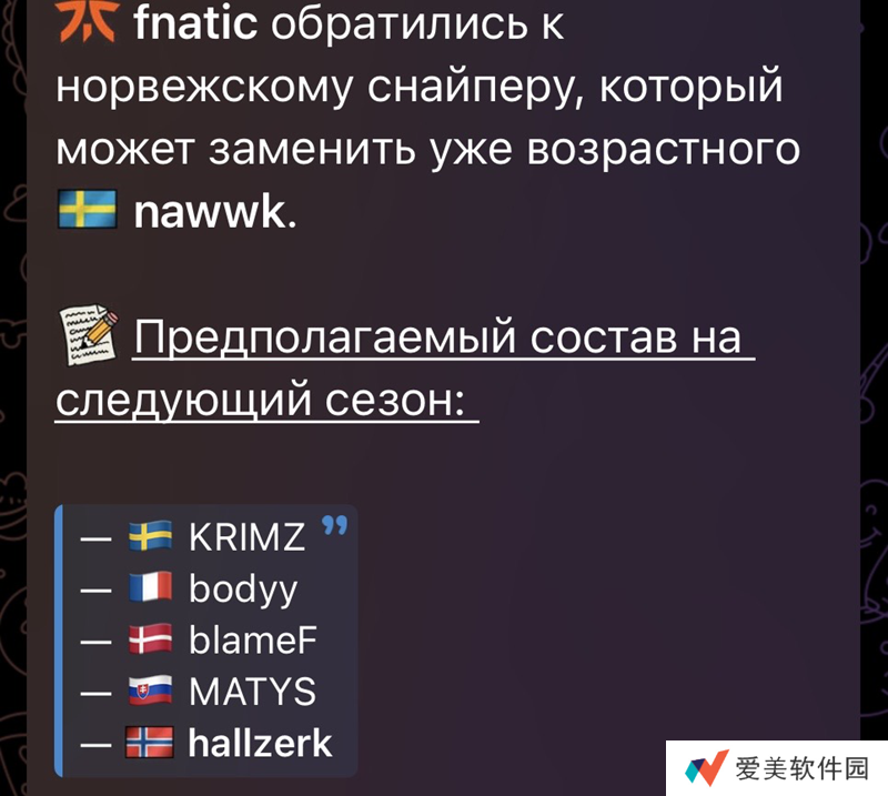 fnatic正在考虑签下hallzerk以替代队内年迈的狙击手nawwk。