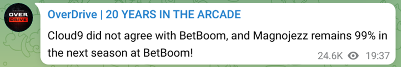 Cloud9战队和Magnojez之间的新进展,根据OD的说法,Magnojez将会留在