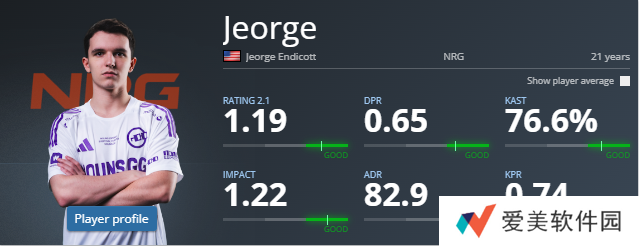 在加入NRG不到一个月的时间,Jeorge就证明了队伍选择自己是正确的。他们在Fragadelphia 第18赛季中以全胜的成绩夺冠,Jeorge也不负众望轰出了队内最高rating——1.37。他在加入队伍短短一个月中获得了平均1.32的Rating。