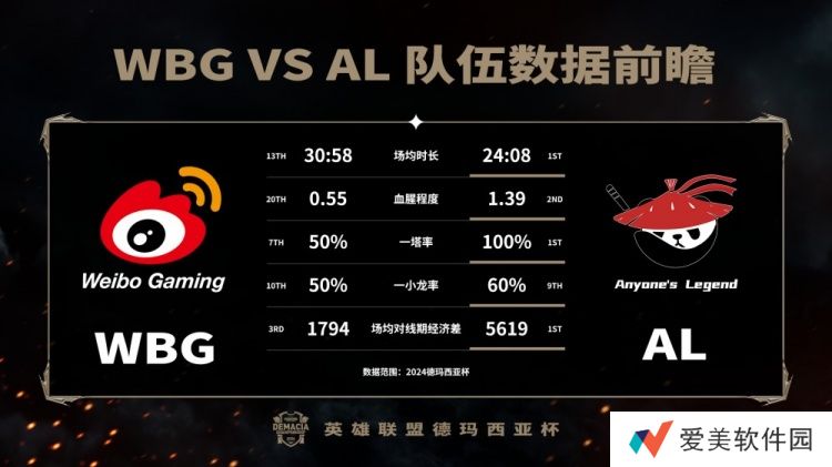 直播吧12月26日讯 英雄联盟赛事数据官博更新,发布2024德玛西亚杯半决赛-WBG vs AL数据前瞻。