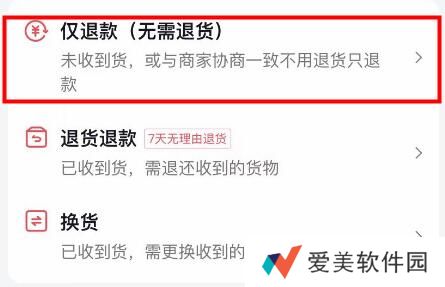 5、选择仅退款。