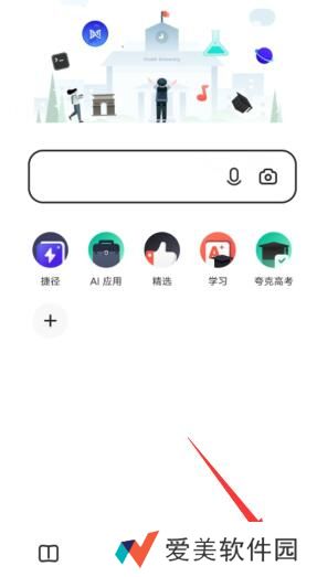 1、打开夸克浏览器,选择右下角三条杠。