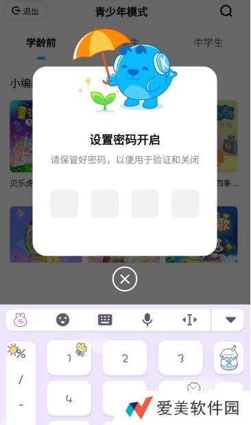 2、开启青少年模式,设置四位数密码。