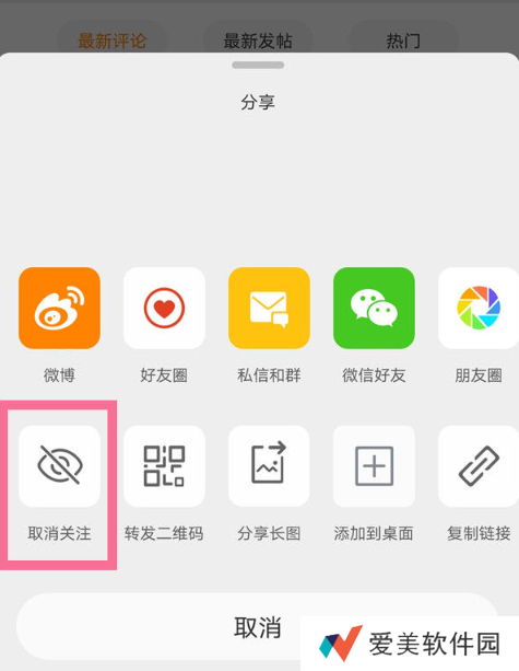 4、选择想要取关的超话,点击右上角三点,左下角取消关注。