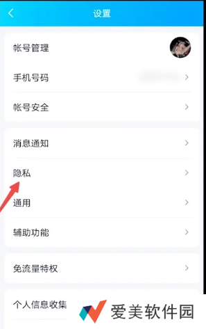 3、进入隐私选项。