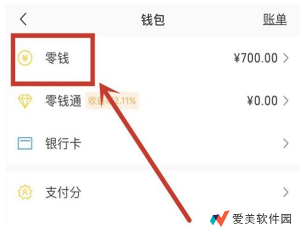 4、点击钱包里的零钱。