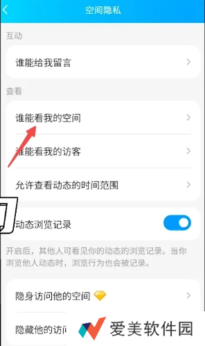 7、谁能看我的空间进行设置。