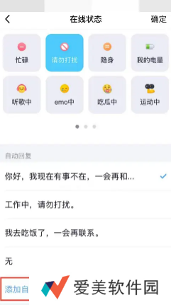5、换成请勿打扰,下面可以添加自动回复。