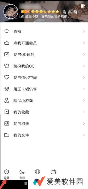 1、打开QQ,点击左上角个人头像,点击设置。
