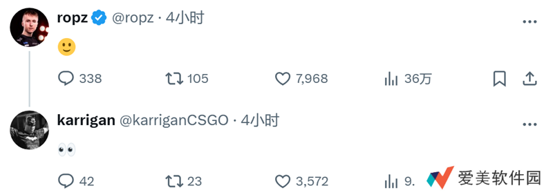 FaZe指挥karrigan也在评论中发布了“眼睛”的表情,ropz本人则也回复了同样的表情。