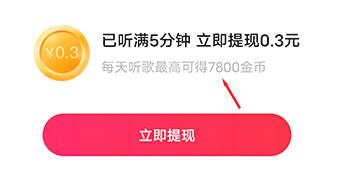 1、听歌是可以获得金币的,金币按照一定比例是可以兑换成现金的。