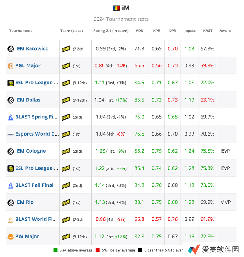 不过,iM的巅峰期过后,他的下限却相当低,他在哥本哈根Major和BLAST世界总决赛上的低迷表现就说明了这一点。这也使他在所有赛事类别中成为TOP20综合评分最低的选手之一:总Rating 1.09,大赛Rating 1.07,精英赛事1.03 Rating,Major赛事0.93 Rating。