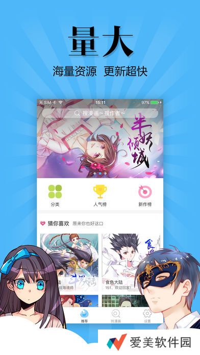 软件推荐爱飒漫画:一款在移动设备上阅读漫画的神器,爱飒漫画app万部精品漫画实时连载,爱飒漫画app拥有最火爆的精品国漫,最人气的经典日漫可一站式流畅阅读,爱飒漫画app海量动画、漫画内容,正版资源高清无广告,快来闲置爱飒漫画app体验吧!