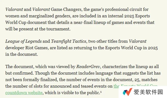 Mikhail Klimentov表示尽管文件中显示最终比赛项目名单尚未确定,但文件内显示的比赛项目数量(25个)和沙特电竞世界杯官方的口径一致。