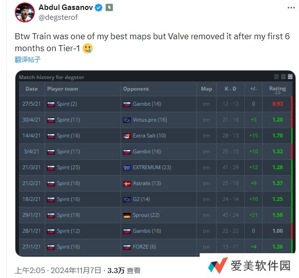 此前degster曾表示Train是他在CS比赛中表现最好的地图之一,但在他进入T1赛场6个月之后便被V社移出了比赛图池。