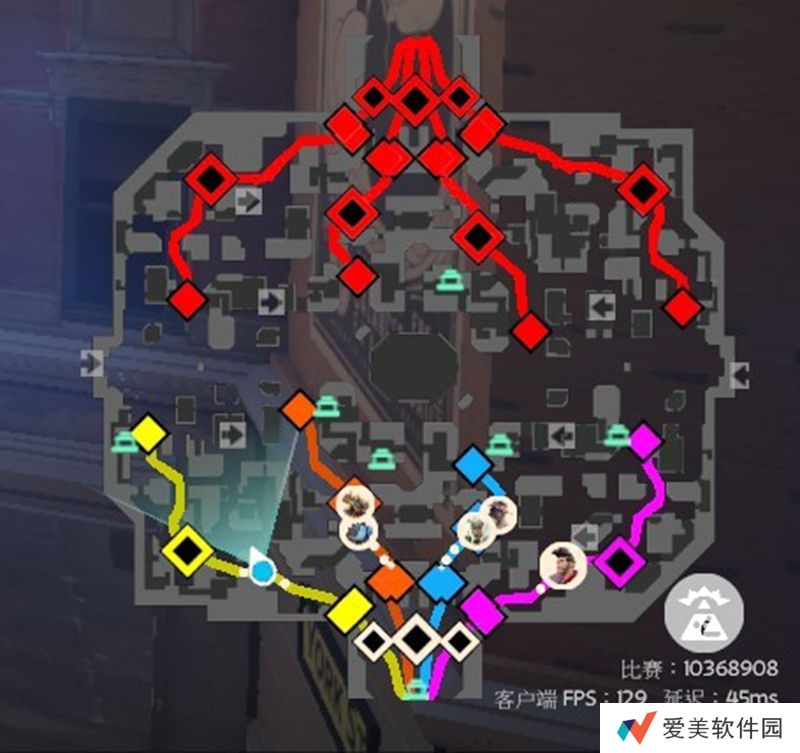四条路线在游戏里以黄色、橙色、蓝色、紫色显示在小地图中,玩家在报点时也可以这样叫:黄路、橙路、蓝路、紫路。