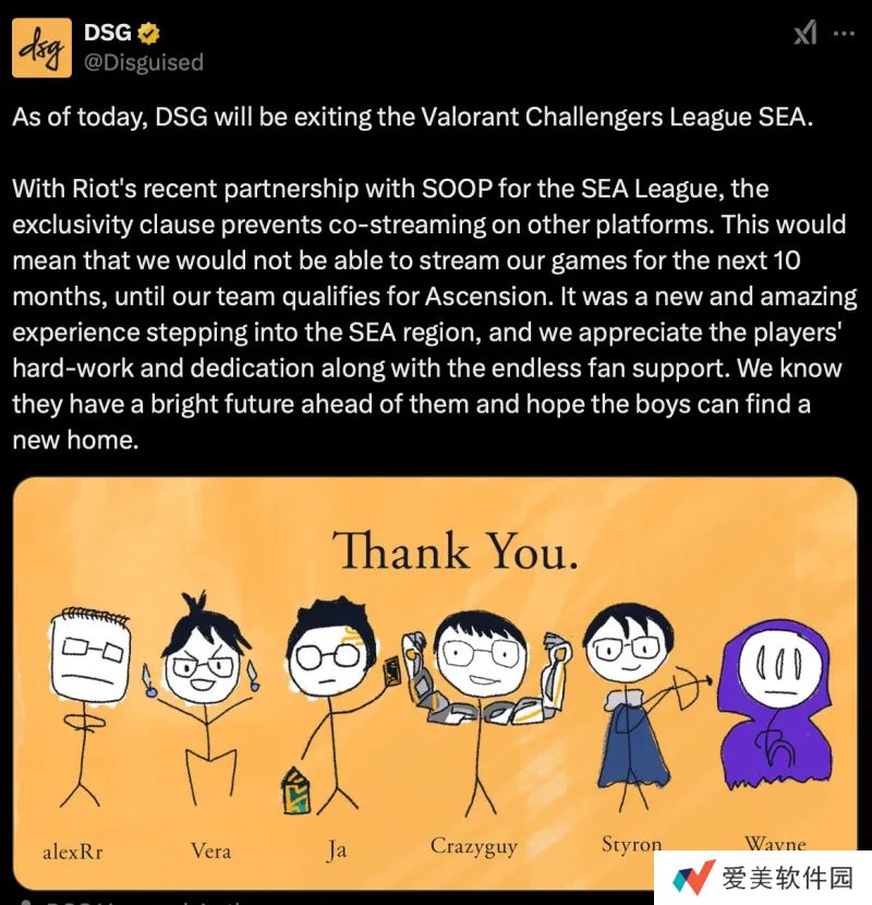 自今日起,DSG战队将退出东南亚挑战者联赛(Valorant Challengers League SEA)。