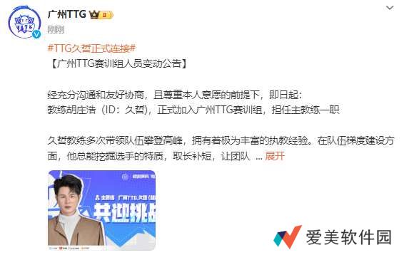 教练胡庄浩(ID:久哲),正式加入广州TTG赛训组,担任主教练一职