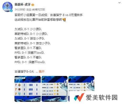 虎扑11月22日讯 军团杯首日战报:古德猫宁 8-0 无情铁手,久诚队未尝一胜