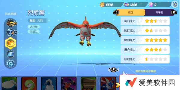烈箭鹰拥有高移动速度和强大的攻击能力,后期它的爆发能力可以对敌方造成致命威胁,它的生存能力较弱,在面对敌人集火时容易迅速倒下。
