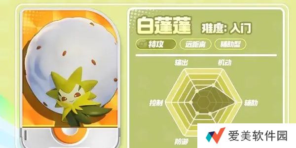 白蓬蓬是一个辅助角色,操作相对简单,能为队友提供治疗和减速,缺点是输出能力较弱,适合没有宝可梦游戏基础的新手玩家。