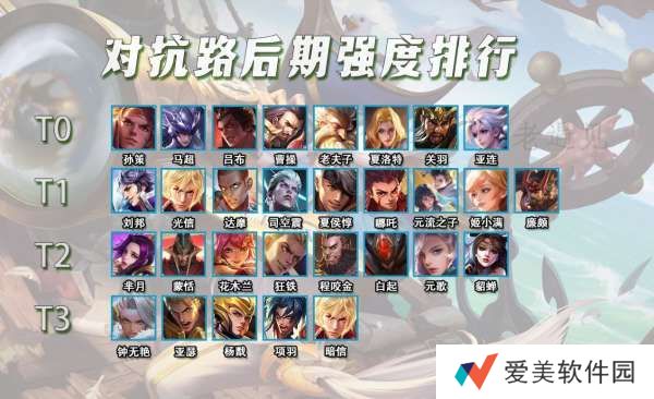 T0的这些英雄里面有打输出为主的,比如马超,吕布,曹操。还有些功能性控制为主的,比如孙策,老夫子,关羽。还有一些综合强度特别高的,比如亚连和夏洛特,每一个英雄在自己擅长的领域都算是天花板英雄。这里聊一下曹操,这个英雄是T0里面最冷门的,他的强大在于后期装备成型后切后排的能力,闪现进场一套爆发就可以蒸发后排,比吕布的大闪还要猛。
