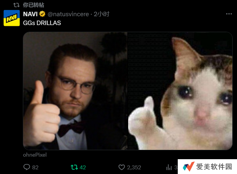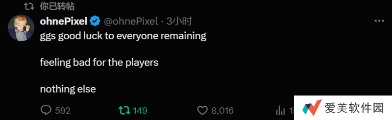 在社交平台上,ohnePixel写道:GG,祝现在还没被淘汰的队伍们好运。