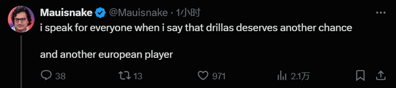 Mauisnake:要我说DRILLAS配得上另一次机会,当然还要有另一名欧洲选手。