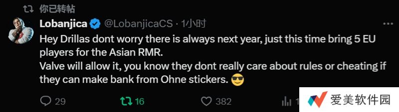 Valve会允许这样做,你知道如果他们能从Ohne(注:DRILLAS教练Ohnepixel是国外顶级网红)贴纸上赚钱,他们并不真正关心规定或作弊。