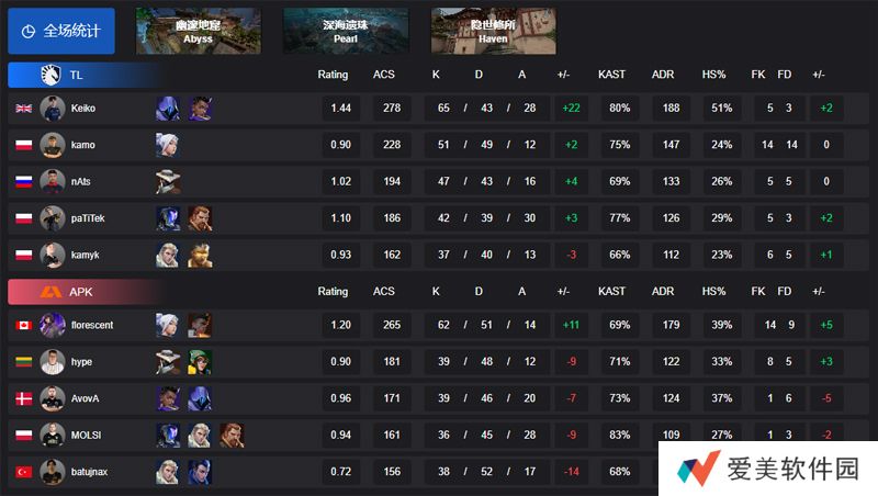 图二APK选择深海明珠,EMEA新军在florescent和batujnax的出色表现带领下,半场取得9-3的领先,尽管下半场TL奋起直追,不过APK还是在florescent的发挥下以13-11扳回一城。