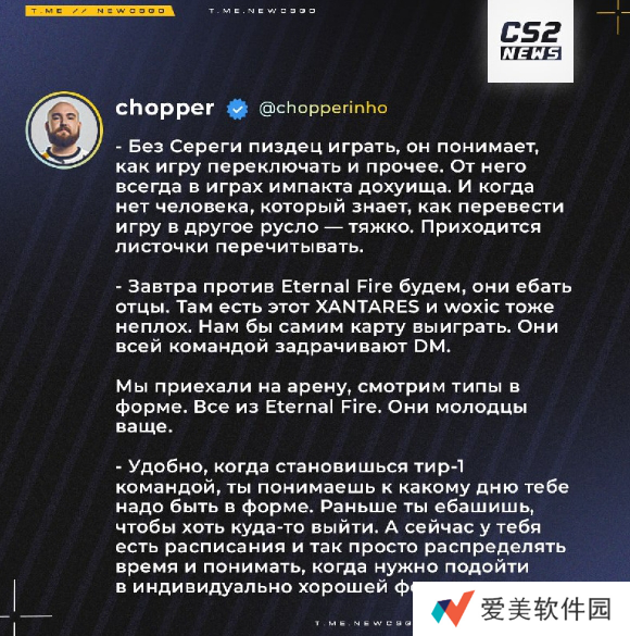 Spirit战队指挥chopper分享了自己的赛后感受,以及决赛将对阵