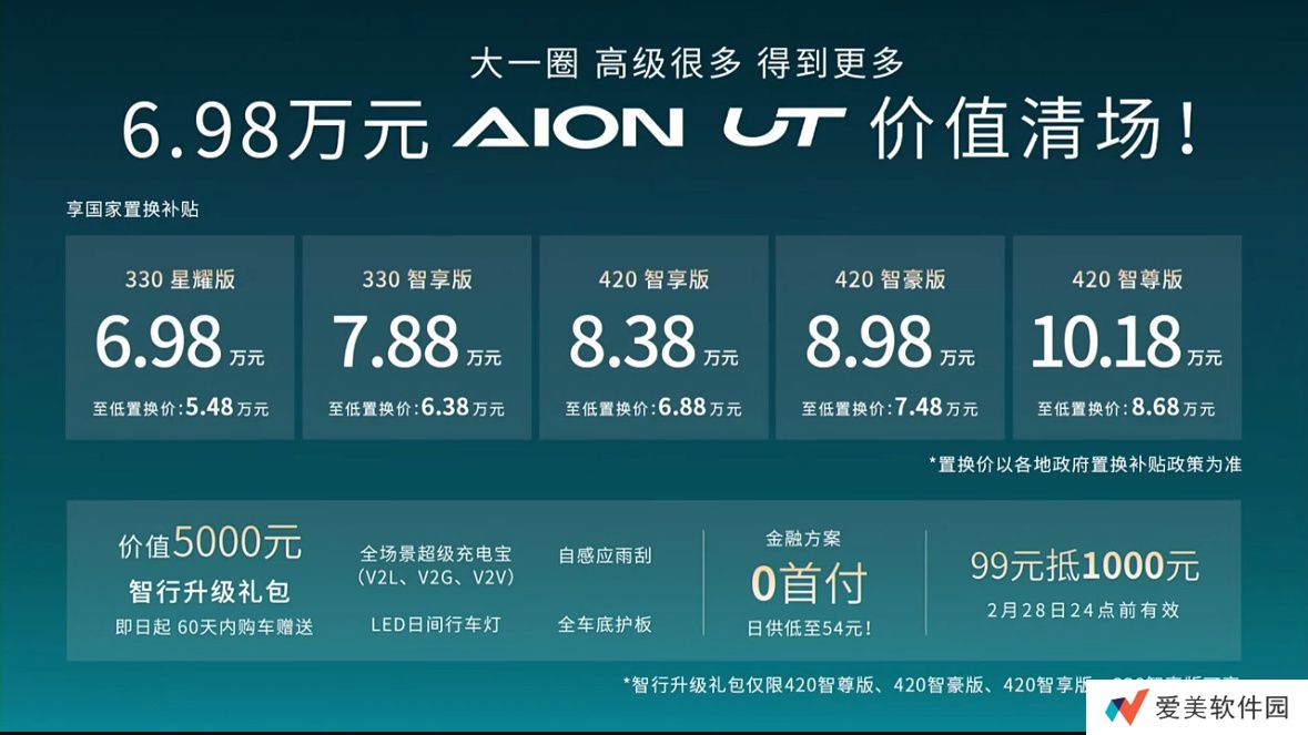 本站 2 月 28 日消息,在今晚的发布会上,广汽旗下“10 万 A 级掀背轿车”埃安 UT 正式宣布上市,官方指导价 6.98-10.18 万元,今晚 24 点前下单 99 元抵一千元。