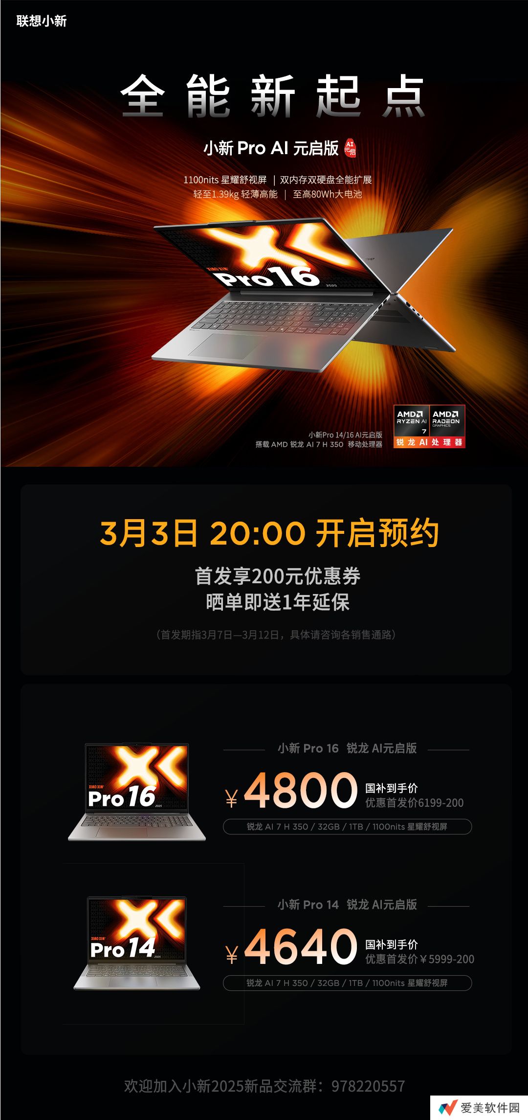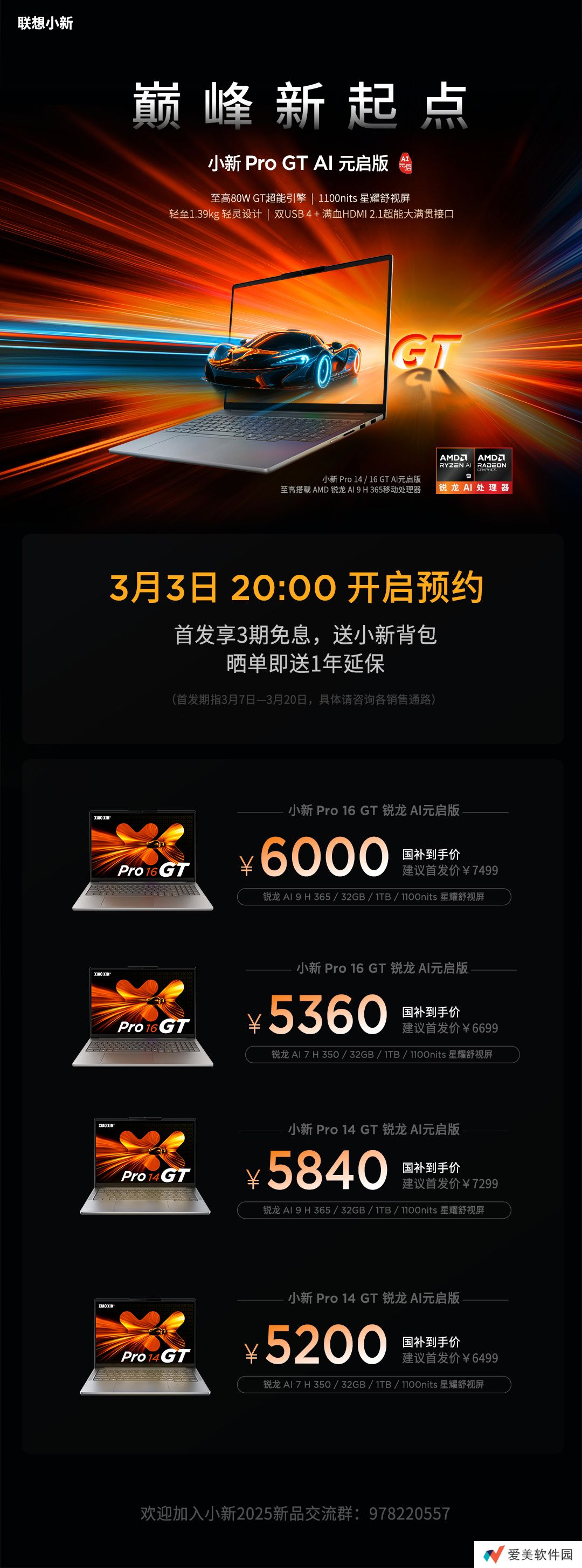 本站 2 月 28 日消息,继英特尔酷睿版本之后,联想今日宣布小新 Pro GT 锐龙 AI 元启版、小新 Pro 锐龙 AI 元启版将于下周一 3 月 3 日 20:00 正式开启预约。价格方面,本站汇总如下: