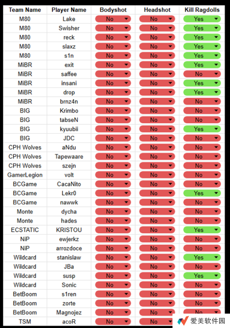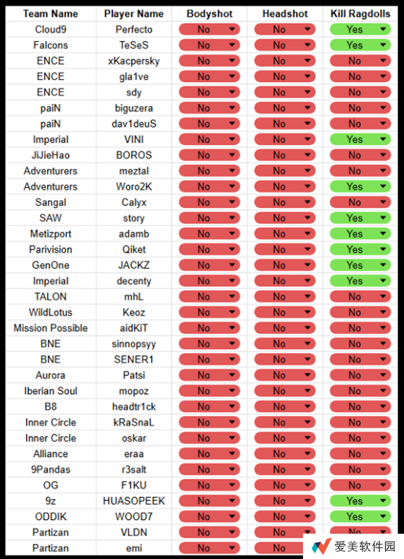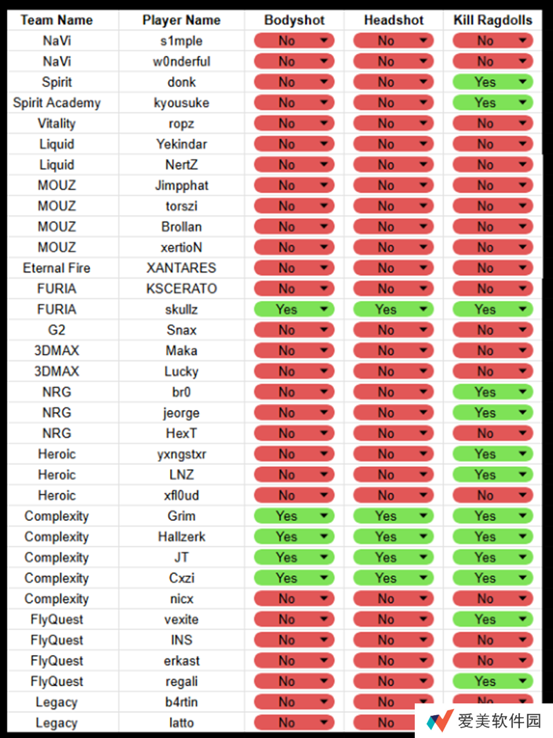 其中大部分职业哥的伤害预测三项功能都是禁用状态,唯一三项都开的只有skullz、Grim、hallzerk、JT、Cxzi五人。剩下的职业哥就算开启,大部分人也只开启最后一项,也就是“预测击杀布娃娃效果。”比如donk、kyousuke等就是其中的代表。