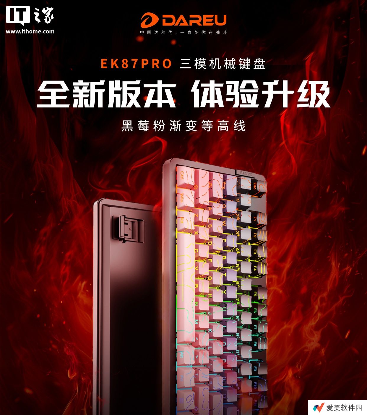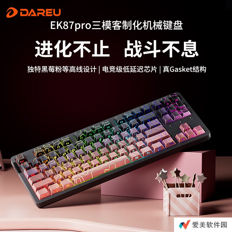 本站 2 月 25 日消息,达尔优 EK87Pro 机械键盘新增“黑莓粉渐变等高线”版本现已开售,搭载“桃 C 拿铁轴”,定价 259元、首发 239 元。