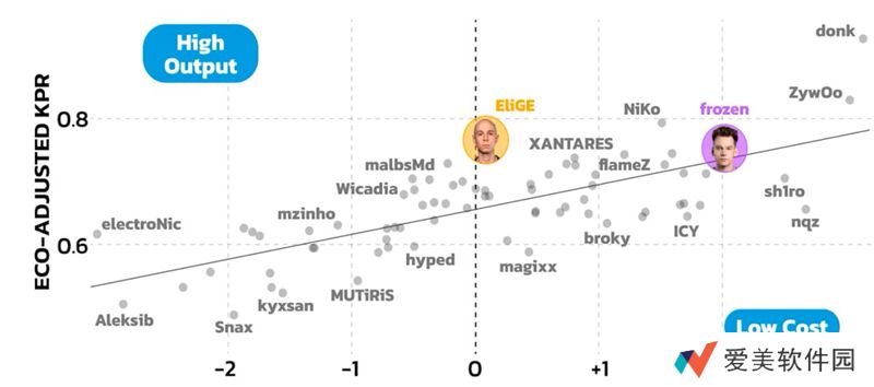 HLTV的统计模型通过追踪玩家对回合结果的影响(同时考虑对手的武器配置)显示,尽管EliGE的击杀数众多,但他对回合胜利的影响远小于frozen。
