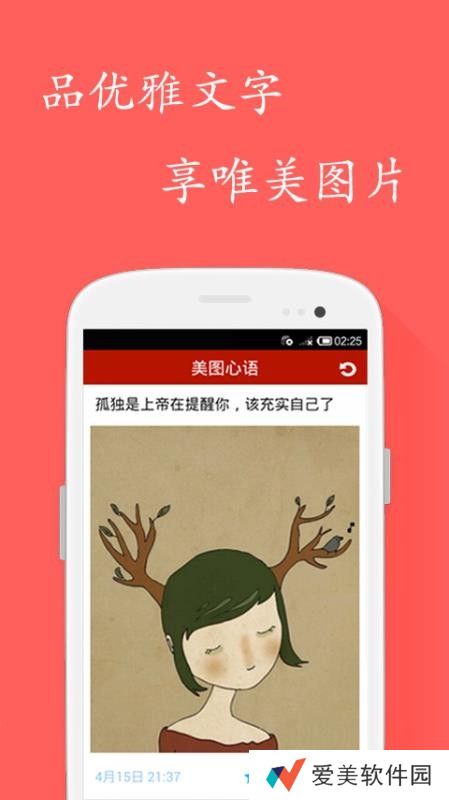 美图心语app是一款专门为用户提供美图与美文资源的应用,所以,每个人可以在这里慢慢的欣赏一张张的精美图片,也能在此阅读各种内容的优秀美文,结合图文的阅读可以让自己的心灵得到洗涤以及可以平复自己的心情,因为这里的文章内容丰富多样,所以满足多数人的阅读需要,也是因为图片的风格不一样,每个人的个性审美也能得到满足。而这里除了现在这么多的图文资源之外,还在不断的推出新的内容,所以用户可以一直保持着新鲜的阅读感受。