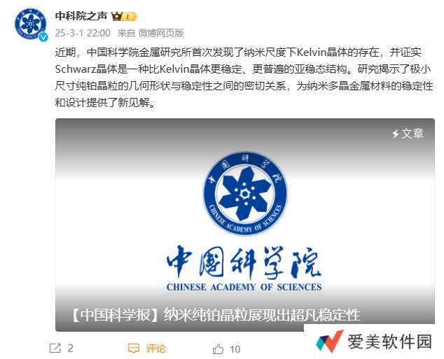 本站 3 月 1 日消息,中国科学院金属研究所研究员李秀艳团队在研究纯铂晶粒时,首次发现了纳米尺度下 Kelvin 晶体的存在,并证实 Schwarz 晶体是一种比 Kelvin 晶体更稳定、更普遍的亚稳态结构。