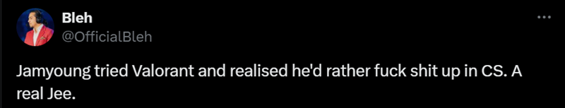 Jamyoung尝试了Valorant,但很快意识到他更愿意在CS里大杀四方。Jee真是个狠人Jee。