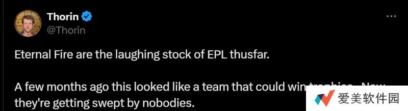 到目前为止,Eternal Fire成为了EPL的笑柄。