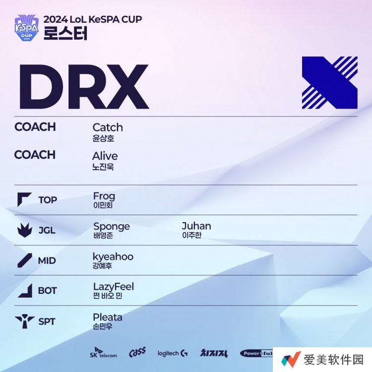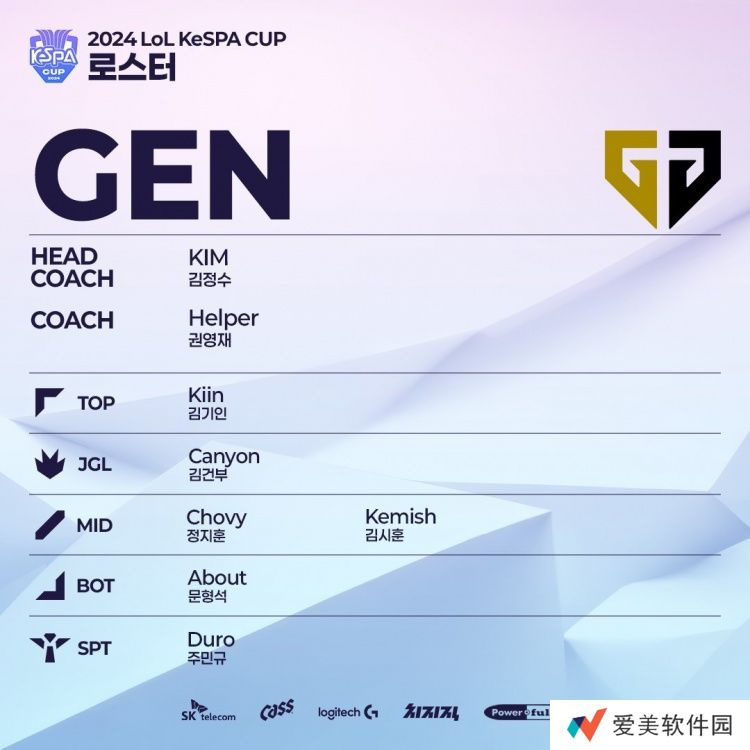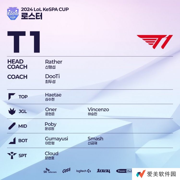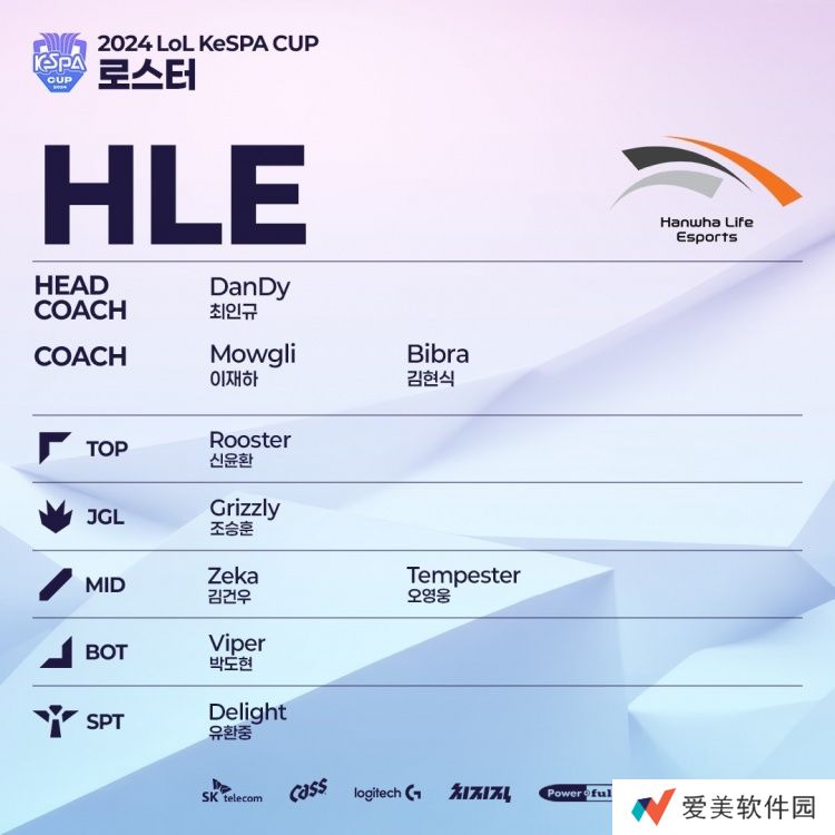 直播吧11月29日讯 KeSPA杯官方公布了将于11月30日开打的KeSPA杯各队大名单,GEN除AD位置外其余主力均参赛,T1方面Oner和Gumayusi出现在大名单内。HLE方面Zeka、Viper、Delight三名主力参赛。
