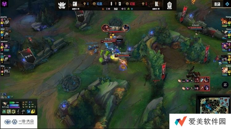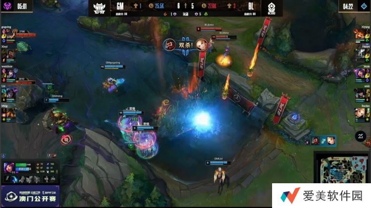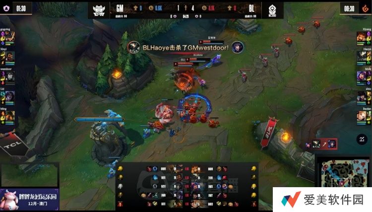 【1:25】河道一级团,Ming泰坦扫描先钩Haoye,但自己送蝎子一血,随后双方激情互A,Uzi卡莎带走Haoye,Smlz女警追着西门狐狸狂打,Baolan拉克丝Q闪捆住男枪,Smlz持续输出和平使者出手拿到Xinyi的积分,Mole收掉残血西门,Baolan队打出1换3。