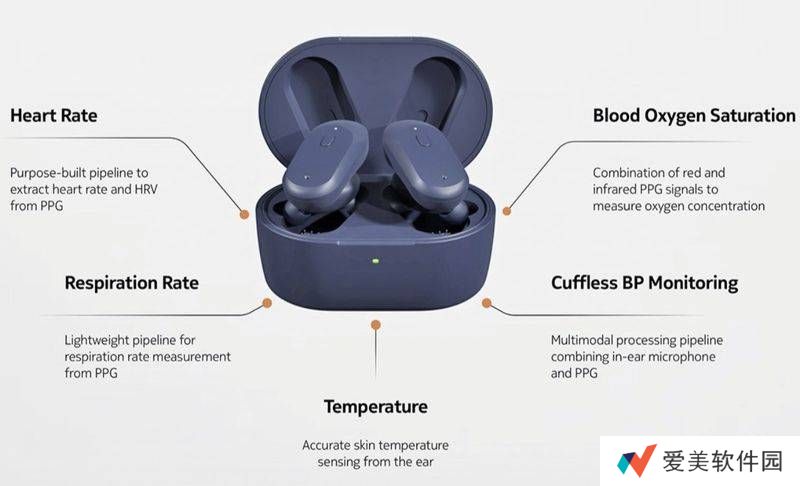 OmniBuds耳机的亮点之一,是其内置了多个精密的生物传感器,包括先进的ML加速器和9轴IMU。这些传感器的加入,使得耳机能够实时、准确地捕捉用户的各项健康数据,如心率、步数、体温、血氧以及血压等关键指标,为用户提供了一个全新的健康管理方式。