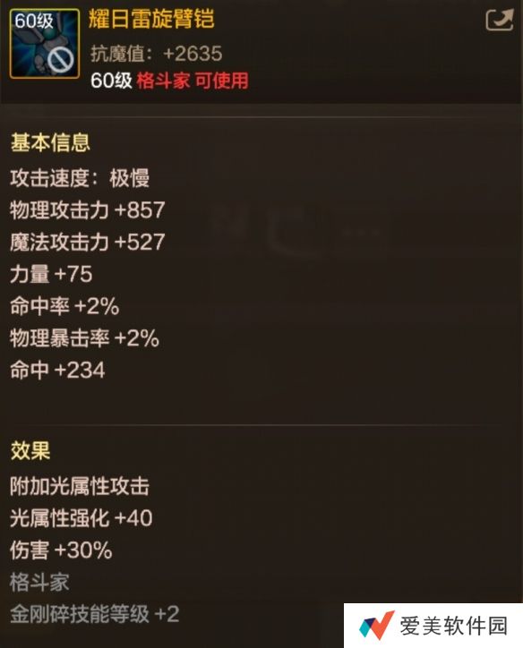 DNF手游耀日雷旋臂铠是DNF手游中的格斗家士职业60级史诗臂铠,有着附带光属性攻击并强化光属性的效果,接下来就让我们一起了解一下DNF手游耀日雷旋臂铠的属性怎么样吧。